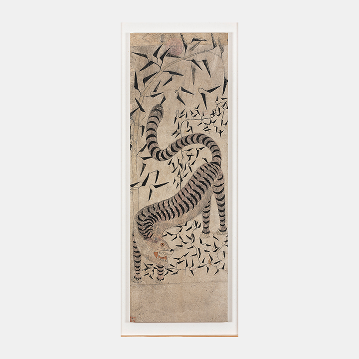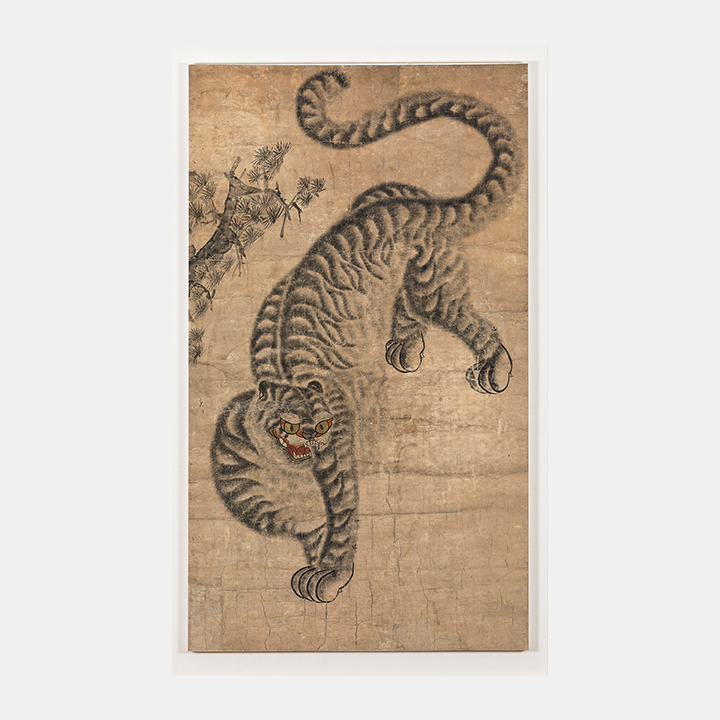 이번 전시는 한국 전통문화에서 수호와 벽사의 상징으로 여겨진 ‘호랑이’를 주제로, 조선 후기 회화에 나타난 호랑이 이미지의 다채로운 변용과 그 미학적 의미를 조명한다. 18세기 화원회화 양식의 〈호도〉부터 시작해 ‘케데헌’의 ‘더피’와 ‘수지’의 원형이 되는 ‘까치호랑이’ 그림 〈호작도〉의 다양한 작례와 화면 가득 호랑이 가죽을 세필로 그려 넣은 〈호피도〉 등을 통해, 호랑이가 단순한 동물이 아니라 일상의 보호자이자 문화적 상징으로 자리해온 과정을 살펴볼 수 있다.